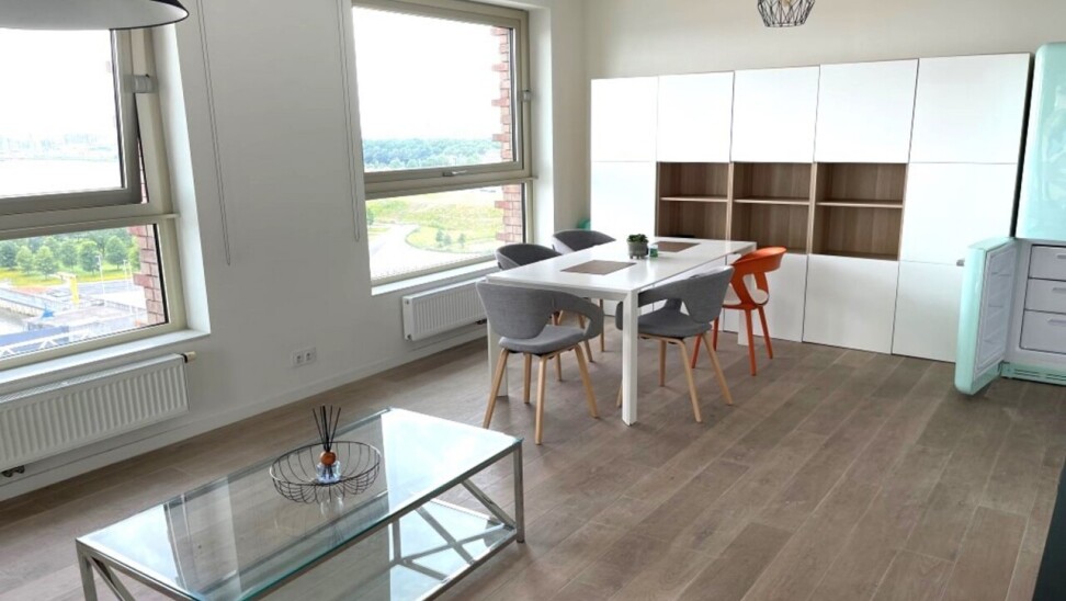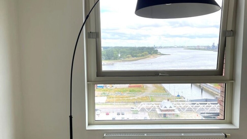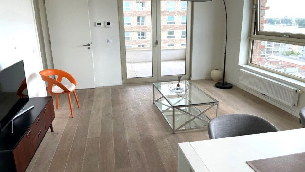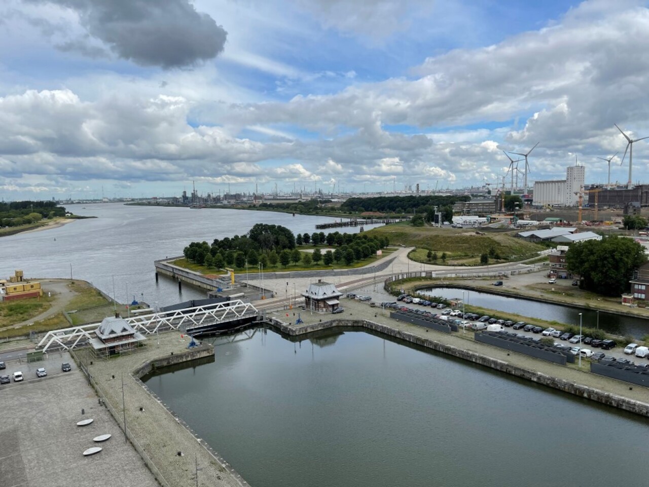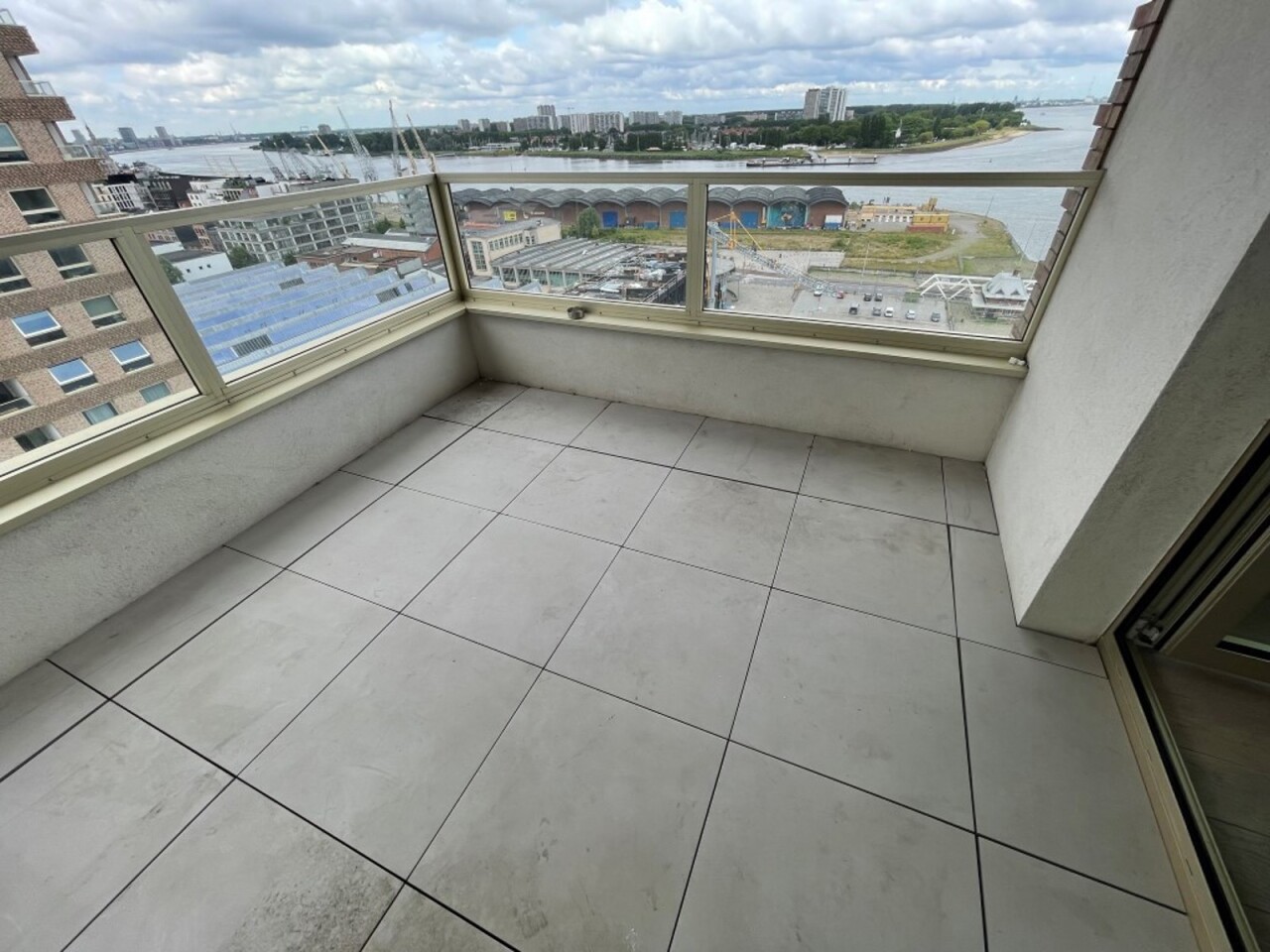 gelegen in de torens van de westkaai op de 12 de verdieping met zicht op De Schelde en haven appartement van 83 m² met 2 slaapkamers inkom met apart toilet , living met aansluitende open ingericht keuken , terras ,1 berging 2 slaapkamers en badkamer met ligbad , lavabo met meubel prijs 1350 € +150 € gemeenschappelijke kosten parking mogelijk aan 100 € nuts voorzieningen apart te betalen BESCHIKBAAR 1juli 2026