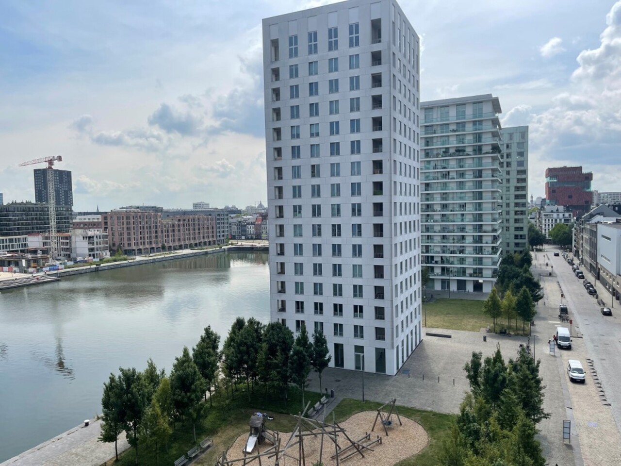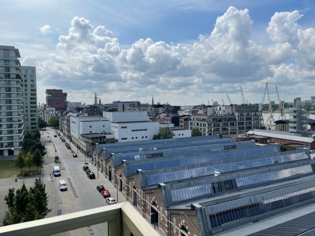 Gelegen op het Eilandje met zicht op de bocht van de Schelde op de zevende verdieping appartement met één slaapkamer . Indeling inkomhal met apart toilet en berging Living met open geinstalleerde keuken keuken , ruim zuidterras , slaapkamer, badkamer met ligbad en lavabo met meubel prijs 379.000 € momenteel verhuurd mogelijk tot aankoop parking aan 35.000 €