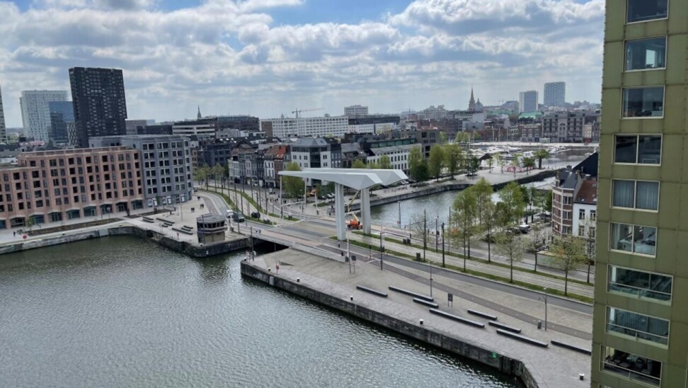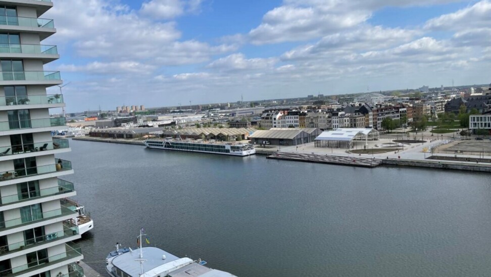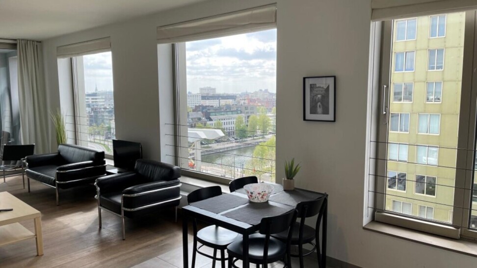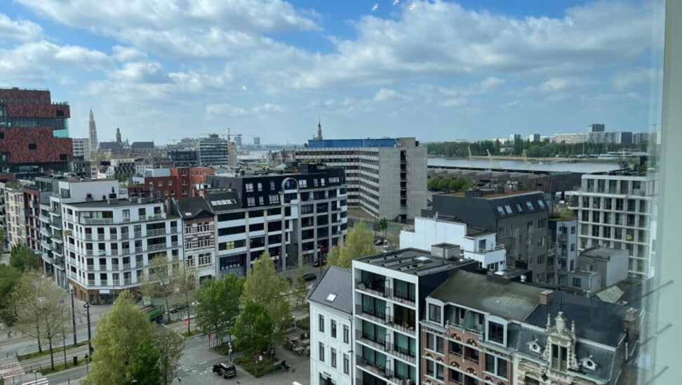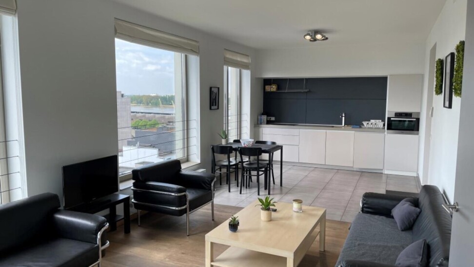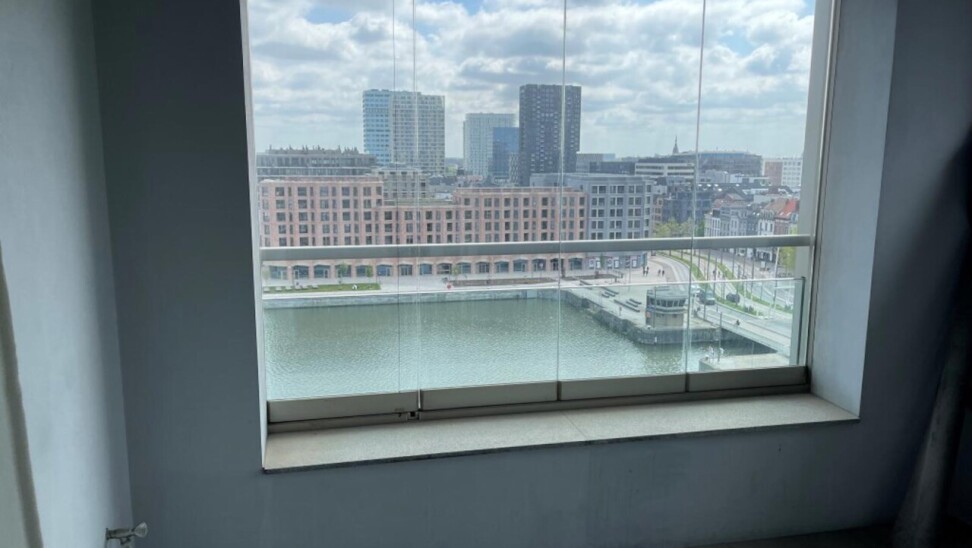 prachtig één slaapkamer appartement gelegen in de 2 de toren van de Westkaai 9 de verd (Eilandje) met zicht op het kattendijkdok voorzien van grote panoramische ramen , indeling : stalen veiligheidsdeur , inkomhal met apart toilet en berging ruime en zeer lichte living met parketvloer en grote raampartijen deze zijn voorzien van extra zonneschermen ,ingerichte open keuken ,aansluitend aan de living zuid-oost terras van 10 m² , 1 slaapkamer voorzien van parketvloeren en badkamer voorzien van dubbele lavabo met kasten ,douche en toilet kelderberging op -2 nr 38 prijs appartement 365.000 € extra staanplaats te koop op -1 aan 38.000 € gemeenschappelijke kosten 130 €