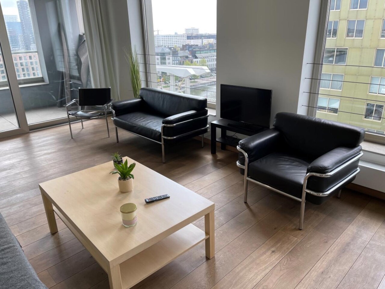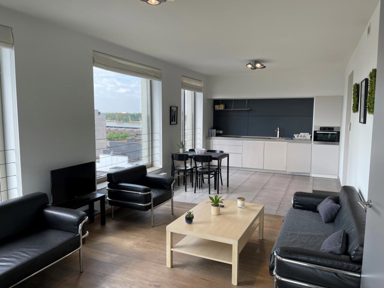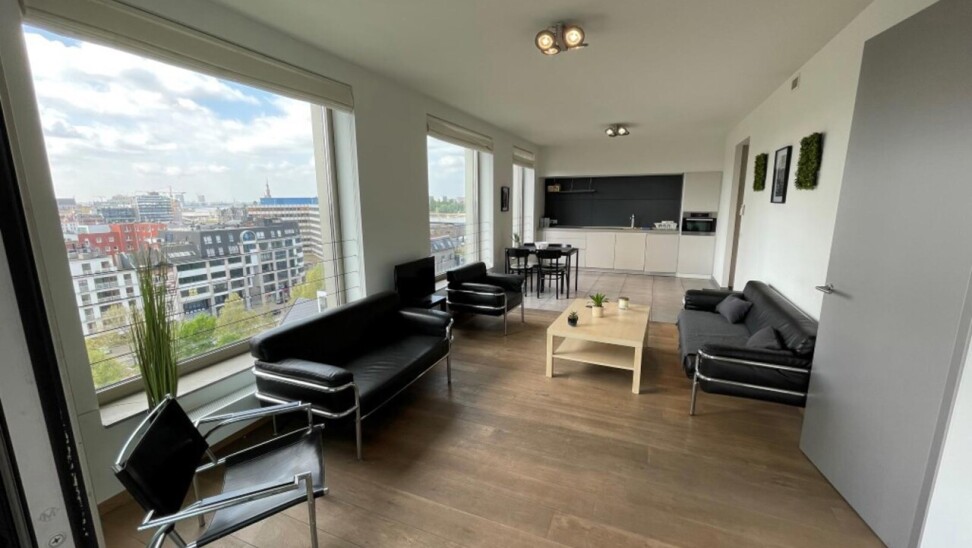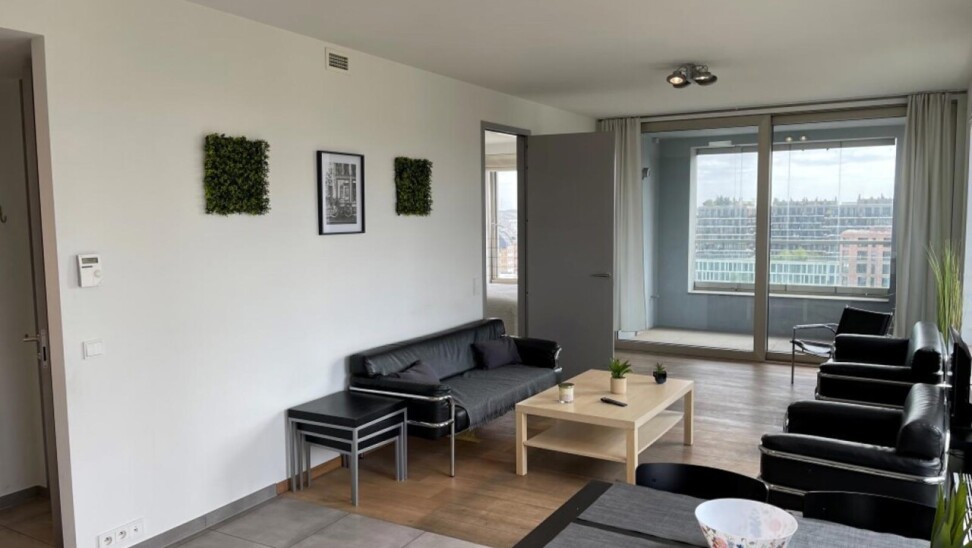 prachtig één slaapkamer appartement gelegen in de 2 de toren van de Westkaai 9 de verd (Eilandje) met zicht op het kattendijkdok voorzien van grote panoramische ramen , indeling : stalen veiligheidsdeur , inkomhal met apart toilet en berging ruime en zeer lichte living met parketvloer en grote raampartijen deze zijn voorzien van extra zonneschermen ,ingerichte open keuken ,aansluitend aan de living zuid-oost terras van 10 m² , 1 slaapkamer voorzien van parketvloeren en badkamer voorzien van dubbele lavabo met kasten ,douche en toilet kelderberging op -2 nr 38 prijs appartement 365.000 € extra staanplaats te koop op -1 aan 38.000 € gemeenschappelijke kosten 130 €