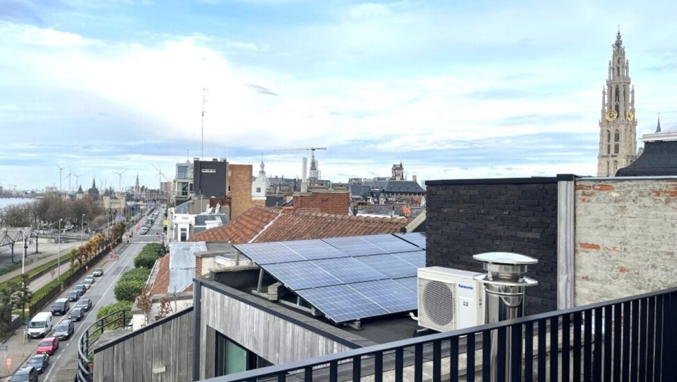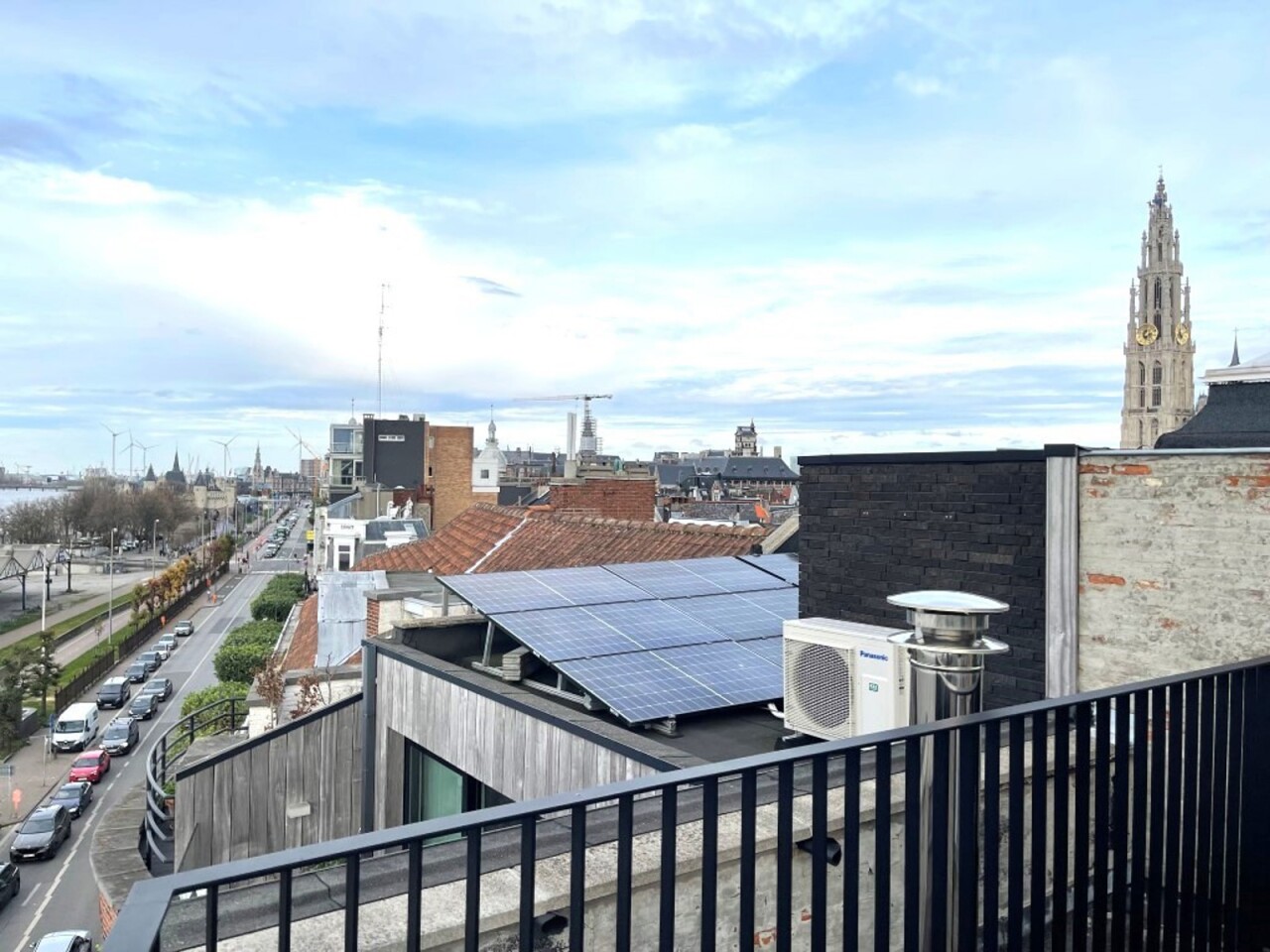 Prachtig triplex appartement adres Zand 6 gelegen op de kaai met zicht op de Schelde voorzien van 2 dakterrassen voor zicht Schelde en achter zicht oude stad en kathedraal op 30 m van pleintje voetgangers tunnel .Indeling op verd 3beviden zich 2 slaapkamers en 2 badkamers verd 4 living zicht Schelde ind hal toilet , vestaire en achterliggend eetplaats en keuken p 5 de verd kleine kantoor ruimte hobby ruimte aan de voorkant groot terrad zicht Schelde aan de achterknant terras met zicht kathedraal en oude stad in de klder bevind zich een ruime boogkelder