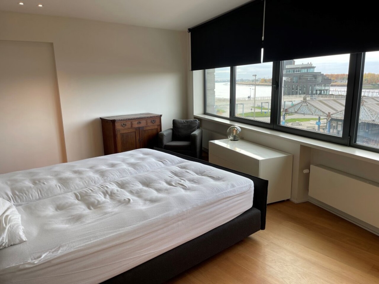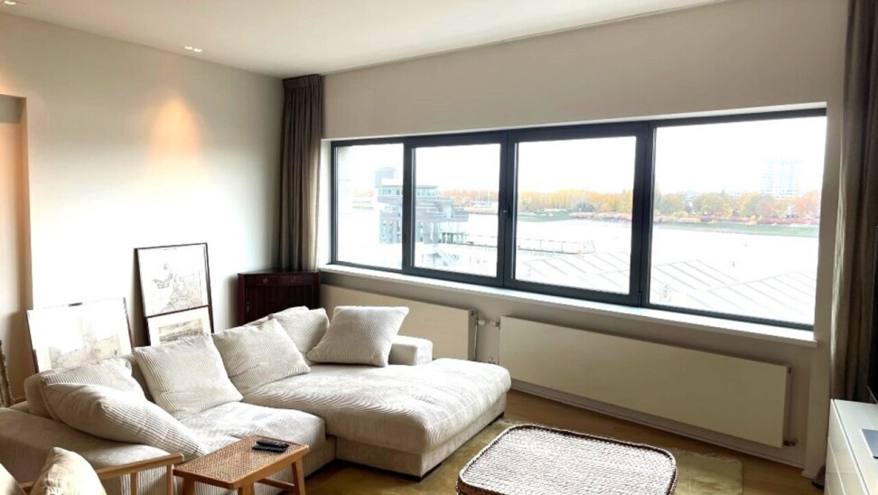 Prachtig triplex appartement adres Zand 6 gelegen op de kaai met zicht op de Schelde voorzien van 2 dakterrassen voor zicht Schelde en achter zicht oude stad en kathedraal op 30 m van pleintje voetgangers tunnel .Indeling op verd 3beviden zich 2 slaapkamers en 2 badkamers verd 4 living zicht Schelde ind hal toilet , vestaire en achterliggend eetplaats en keuken p 5 de verd kleine kantoor ruimte hobby ruimte aan de voorkant groot terrad zicht Schelde aan de achterknant terras met zicht kathedraal en oude stad in de klder bevind zich een ruime boogkelder