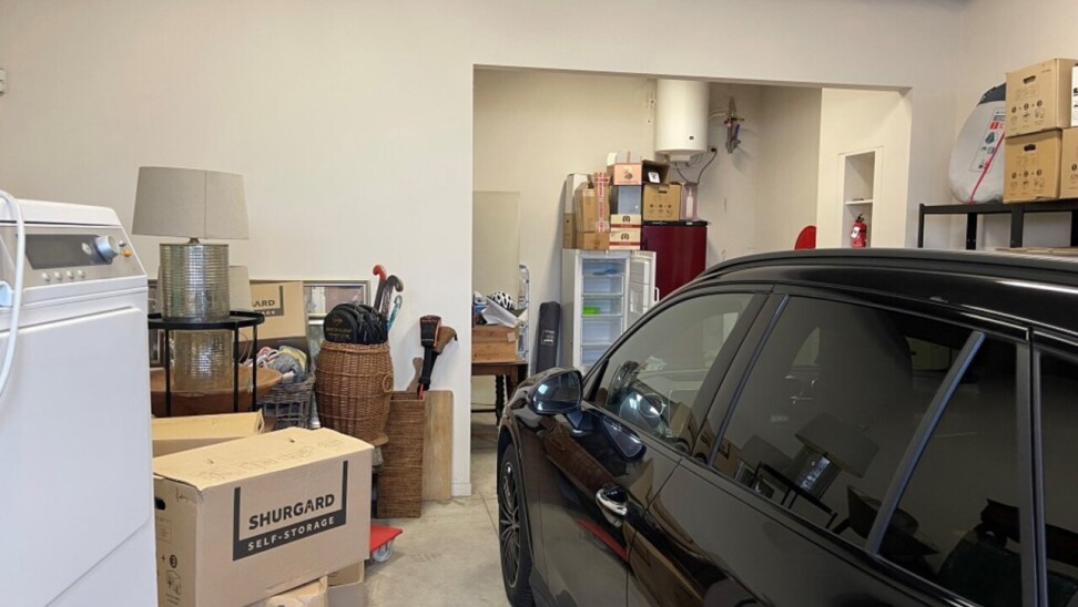 gelijkvloers zeer ruime garage voor twee auto's en nog plaats voor extra opslag huuprijs 2850 € beschikbaar vanaf 1 januari 2026