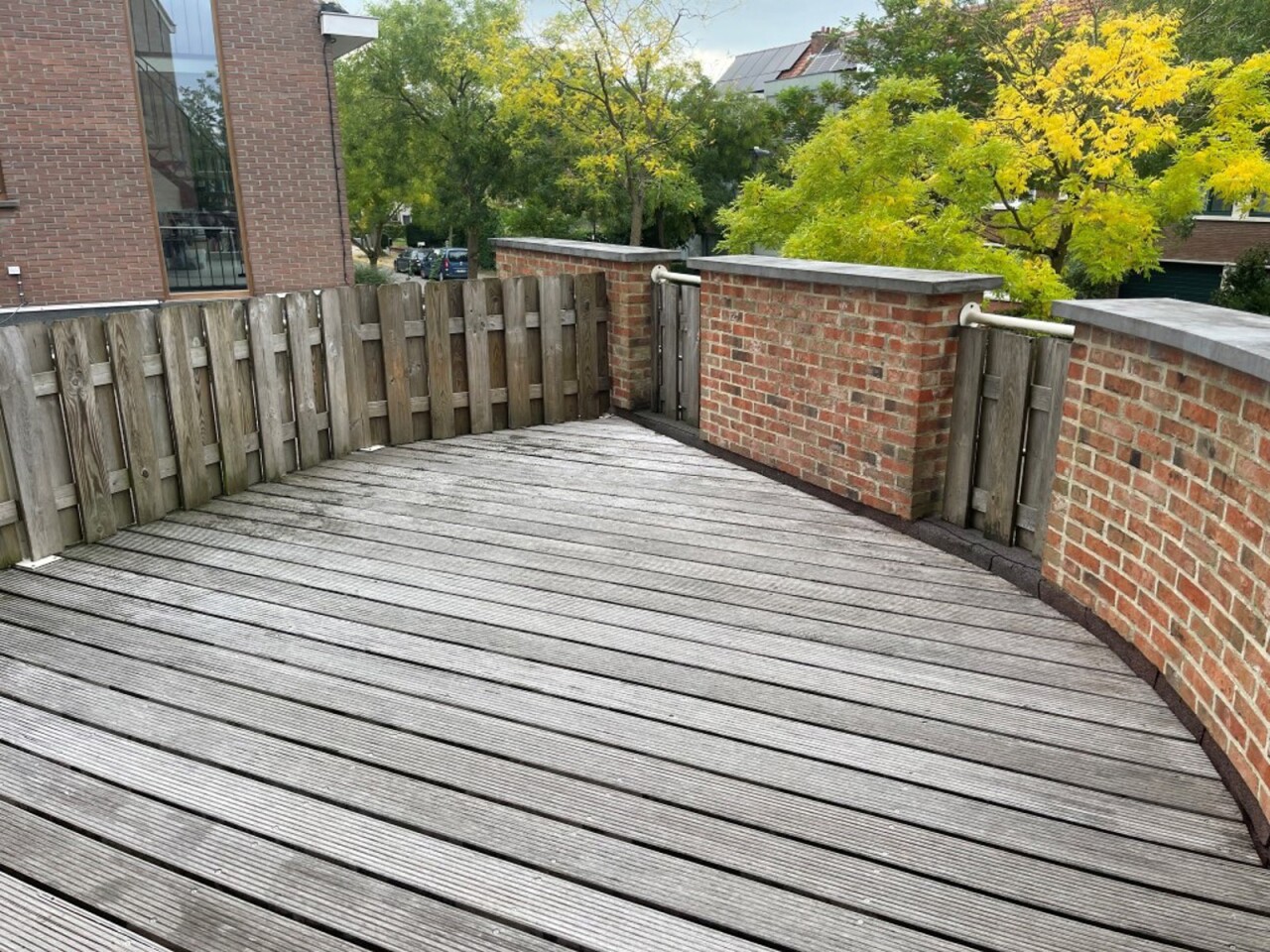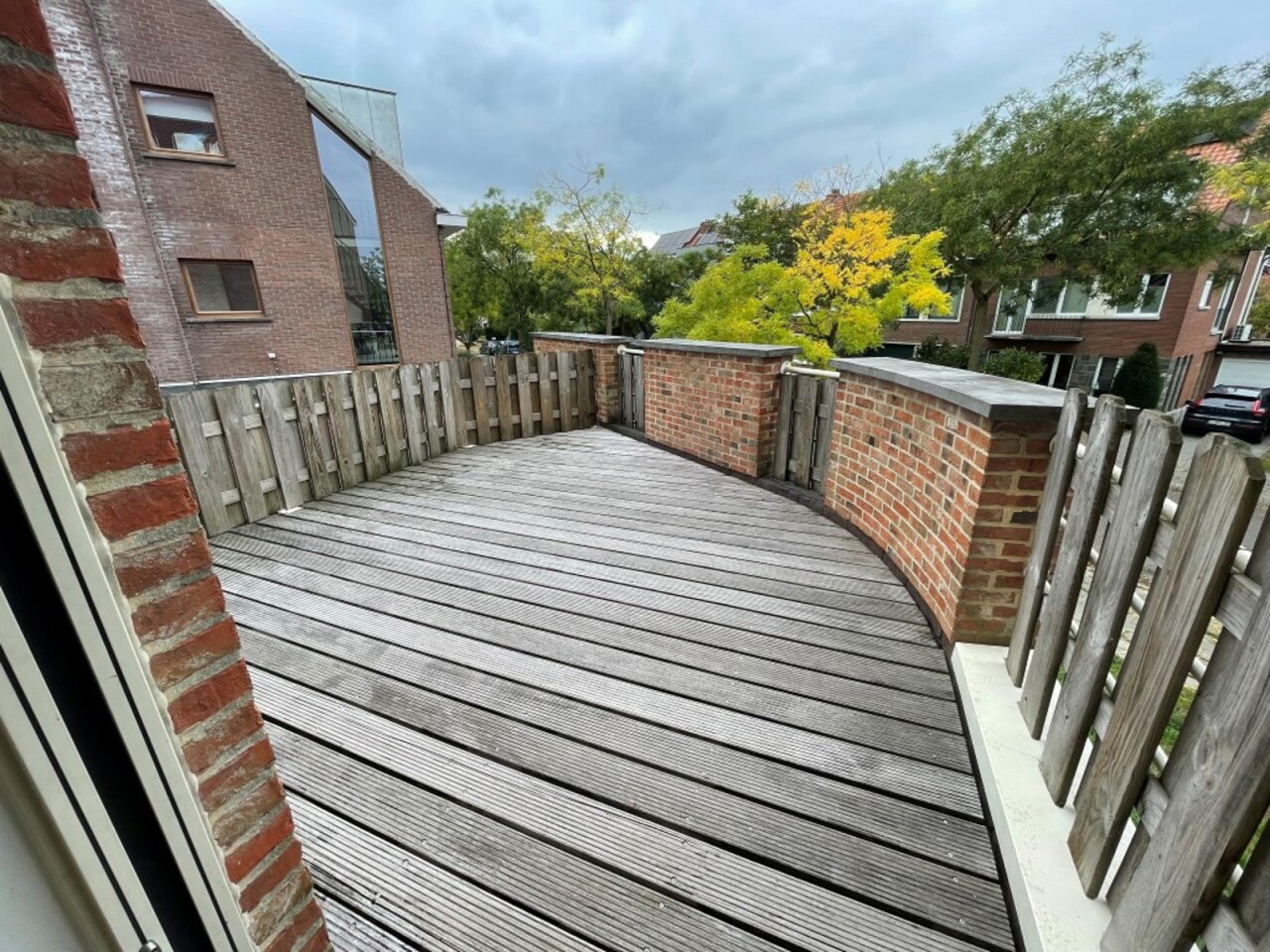 Gelegen in een rustige wijk van Mortsel triplex appartement met 3 slaapkamers en ruin terras :I Indeling :inkomhal ,living met ruim terras +/- 17 m² zuid -west gericht aparte ingerichte keuken met berging via de trap naar de slaapkamers en badkamer met ligbad en douche bovenste verdieping bestaat uit een grote ruimte deze kan dien als slaapkamer of hobbykamer Huurprijs 15000 € + 25 € kosten nutsvoorzieningen privé te betalen direct beschikbaar